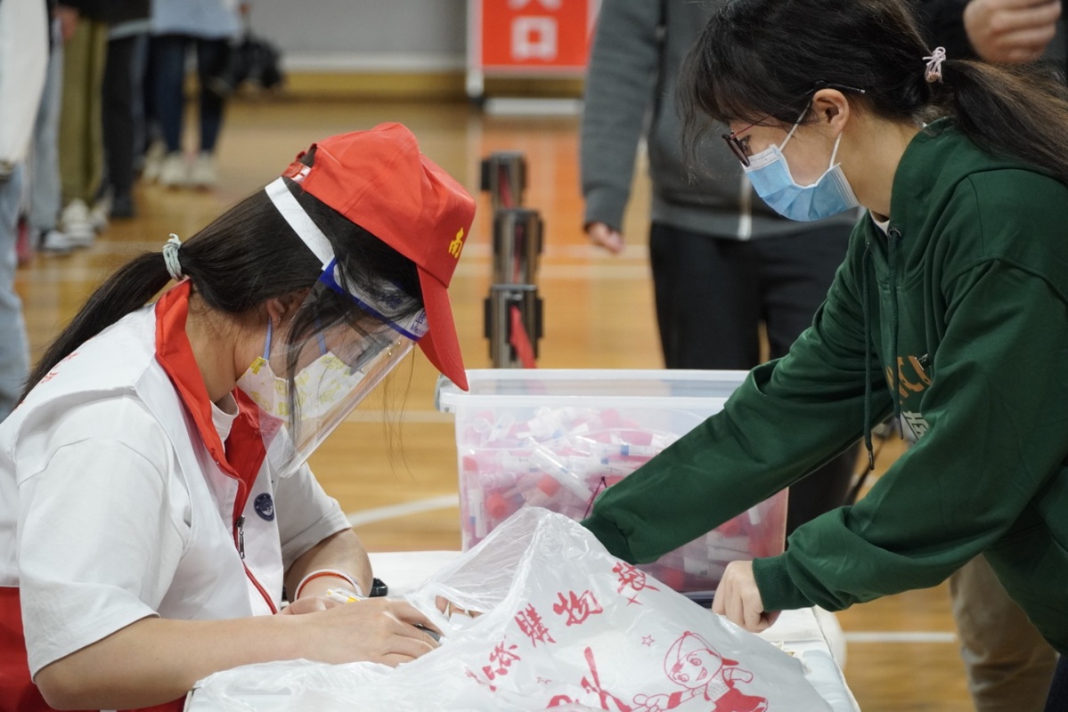 “老師,我已經做完核酸檢測了,現在哪里還缺人手嗎?”在服從學校規定、確保自身安全的情況下,大量志愿者在主動報名后迅速投入到志愿工作中。體育場館內外,遍布著他們忙碌奔跑的身影。“很多志愿者投入工作后沒有吃過飯、喝過水,到后來大家都有點體力不支,但沒有人離開過自己的崗位。”從17日下午4點接到通知到18日凌晨4點整理完現場最后一批的物資,志愿者在防疫一線上已整整守了12個小時。從配合醫護人員完成檢測工作到盡己所能維持現場秩序,戴上專屬于志愿者的紅帽那一刻起,信念和行動就是青春最好的證明。
