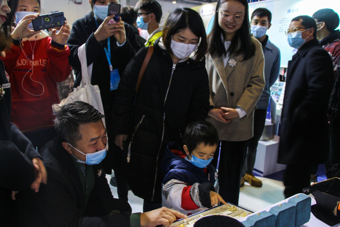 珍蚌珍美團隊展品也是備受矚目,精巧地擺放著珍珠飾品。有項鏈、戒指、胸針,各式各樣、珠光奪目,吸引了眾多參展人員的關注。